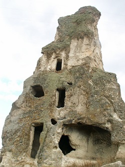 Kayalığın batısında ve yolun alt kısmında yer alan peri bacalarından bir tanesi, zemin kat ile birlikte üç katlı olarak oyulmuştur.