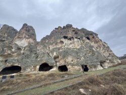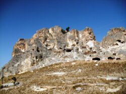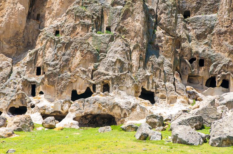 Bunlar tüflerin oyulmasıyla oluşturulan evlerdir. Bu dağlık alan, kale benzeri yerleşim yerleri de barındırır.