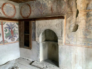 Tavan ve nişlere aşı boya ile geometrik bezemeler ve haçlar yapılmış olup tavanda aynı zamanda aşı boya ile bant şeklinde bezeme de yapılmıştır.