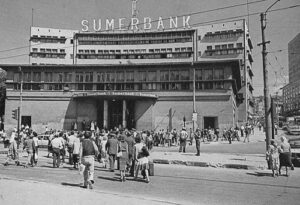 Öncelikle “Taşhan” dan söz etmek gerekir, çünkü Sümerbank binası, bu Taşhan yıkıldıktan sonra aynı yere yapılmıştır.