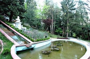 Termal tesislerin girişinde: sol tarafta “Yedi Havuzlar” denen, ard arda yapılmış, yedi ışıklı çağlayan bulunur.