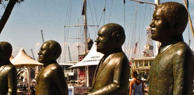Cape Town şehrinde: V&A Waterfront çevresinde dolaşırken: arka arkaya ve dalgın duran 4 büyük bronz heykel göreceksiniz. Bunlar: Albert Luthuli, Desmond Tutu, FW de Klerk ve Nelson Mandela’ya aittir.