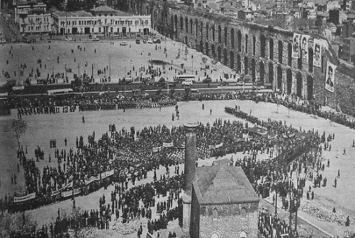 Bölge Osmanlı döneminin sonlarında da önemli toplum hareketlerine sahne olmuştur. 19 Mayıs 1919 tarihinde Fatih’te, İzmir’in Yunanlılar tarafından işgalini protesto için Saraçhanede yapılan iki büyük mitingde, 50 bin kişi toplanmıştır. Özellikle, Halide Edip Adıvar: karalar giymiş bir Türk kadını olarak, bu büyük kalabalığın karşısına çıkarak onları coşturan konuşmalar yapmıştır.