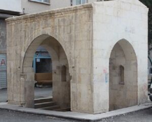 Çeşme: dikdörtgen planlıdır. Önü sundurmalıdır. Çeşme: yazıtları, su teknesi, maşrapalık olarak kullanılan iki küçük nişi ve rozetiyle, yapıldığı Osmanlı döneminin özelliklerini yansıtmaktadır. Günümüzde, suyu akmıyor.