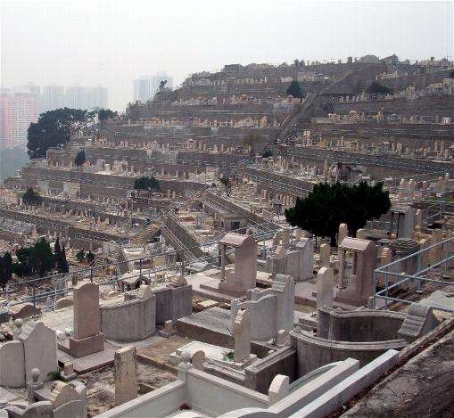 Şehrin batı eteklerinde bulunan bu mezarlık, 1915 yılında, yamaçtaki teraslara yapılmıştır. Çin kültürü gereğince: mezarların deniz manzaralı olması istenir. Ancak, günümüzdeki yapılaşma sonucu, birçok mezar, yüksek katlı blokların arkasında kalmıştır.