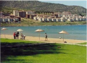 Bunlar: askeri lojmanlar ve hemen göl kıyısında bir sosyal tesistir ve bu sosyal tesisin önündeki plajdan göle girilebilmektedir. Ancak, burada dikkat çeken bir yer daha var, hemen kıyıdan gölün üstüne doğru uzanan ve büyük bir kaya blok kütlesinin üzerinde bir bina göreceksiniz, burası bir anlamda kartal yuvası gibi olan tesiste askeri bir tesistir.