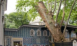 Evliya Çelebi notlarında avluda iki ulu çınar bulunduğu ve bunların Fatih Sultan Mehmet döneminde dikildiği belirtilmektedir. Ancak bu çınarlardan biri, 1910 yılında yaşlılığı sebebiyle yıkılmıştır, günümüzde tek çınar ağacı vardır.