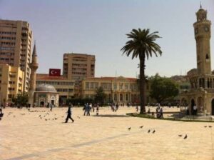 Evet, devam ettiğimizde, bu yol bizi, yaklaşık 2.5 km. sonra, Gündoğdu Meydanına, yani İzmir şehrinin, büyük boyutlu toplantılarının yapıldığı yere götürüyor. Yine aynı yoldan, Konak meydanına dönüyoruz ve günümüzü bu şekilde bitiriyoruz. Gün bitiminden önce, yine burada sahil kesiminde, güneşin batışını seyretmelisiniz.