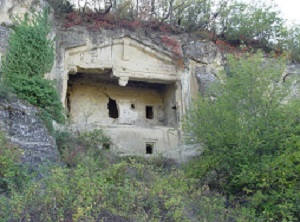 İlçe merkezine 21 km uzaklıktaki Maksut köyünde Tabaklı Mahallesindedir. 40 metre yükseklikteki oyuğun tavan kısmı kubbemsidir. Buraya çıkabilmek için oyularak merdiven oluşturulmuştur. Kayanın ön kısmında, giriş için 3 metre genişliğinde, balkon şeklinde ikinci bir oyuk bulunur.
