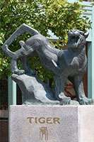 Müzenin girişinde: ziyaretçileri iki büyük aslan karşılar. Bunlar, 1894 yılında heykeltıraş Edward Kemeys tarafından hazırlanmış ve buraya konulmuşlardır.
