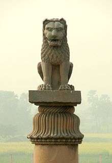 En ünlü sütun: MÖ.250 yılında, İmparator Ashoka tarafından yaptırılan ve “aslan ayağı” olarak isimlendirilen sütundur. Burada: 4 aslan, arka arkaya oturur görülüyor. Günümüzde, bu sütun: Sarnath Müzesinde muhafaza edilmektedir. Bu sütun: günümüzdeki Hindistan ülkesinin “ulusal amblemi” ve Hindistan bayrağının “merkezindeki” şekildir.