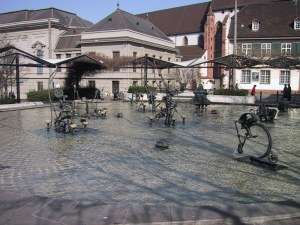 Heykelde: Anna, küçük bir tabak içine su döken, mavi elbiseli bir kadın tarafından temsil ediliyor. Diğer çeşme: üzerinde bir bayraktar heykeli olan “Schützenbrunnen” isimli heykeldir.