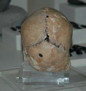 Kakma için oyulmuş (şimdi kayıt) göz ve burun delikleri belirgindir.