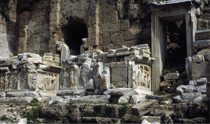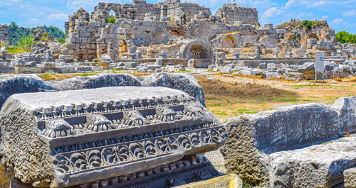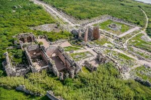 Kent MÖ 3’ncü yüzyılda Selefkilerce inşa edilen ve MS 4’ncü yüzyılda ekleme yapılan bir duvarla kuşatılmıştır. Duvarlı kentin dışında, yakın bir tepeye yaslanmış tiyatro ve iyi korunmuş bir stadyum bulunur.