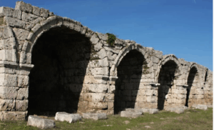 Bugün kapı ile beraber anılan at nalı şeklindeki avlu ise Roma döneminde Bithynia Valisinin kızı Plancia Magna tarafından oluşturulmuştur. (MS 120-1122)