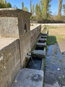 Çamaşırlık suyu kaynağının su sıcaklığı 75 derecedir ve bu su, çamaşırlık denen mahalleye akar.