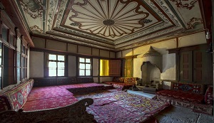 Burada da duvarda: bir deniz manzarası resmedilmiştir. Üzerinde kemerli bir köprü olan su yolu, arkada evler, ağaçlar, tepeler ve bulutlar görülür. Bu odada: kırmızımsı bir renk hakimdir. Ahşap tavanı, en az diğer odanın ki kadar süslüdür. Ortada yuvarlak bir göbekten çıkan ışın demetleri, bir halka oluşturur. Yapının üst örtüsü: ahşap ve kiremit kaplıdır. Müze olarak düzenlenmiş yapının taş kaplı avlusunda: bazı arkeolojik ve Etnografik eserler sergileniyor.