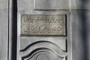 Bu kitabenin üstünde: oyma mermer şebekeli ve kemerli ikinci bir pencere vardır.
