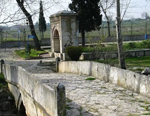 Padişah 4. Mehmet döneminde yapıldığı sanılıyor. Uzunluğu 65 metre olan taş köprü, 3 kemerlidir. Ayaklarının ortasında, boşaltma gözleri var. Günümüzde: köprünün altından akan dere: çevreye saldığı berbat kokusu nedeniyle, köprünün de, seyirlik zevkini yok etmiş durumda. Zaten, köprü araç trafiğine kapalı.