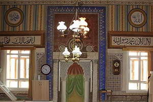 Mihrap: sade görünümlüdür. Minber: mihrabın sağ tarafındadır. Özgün olan ahşap minberin dış yüzeyi yağlı boya ile boyanmıştır.