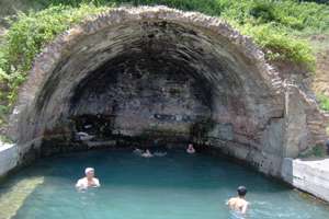 Başkaca tesis yok, bu havuza girip şifalı sudan yararlanmak mümkün.